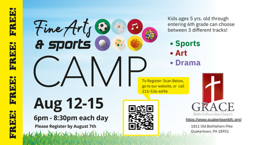We would like to invite you to a Fine Arts and Sports Camp for Kids Ages 5-12 (Free of Charge)!