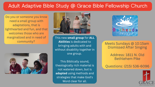 Fellowship Hall Classrooms (Room 113-115) – "The Holy Spirit: Who He Is and What He Does"– Teachers: Jim & Michael Roberts
